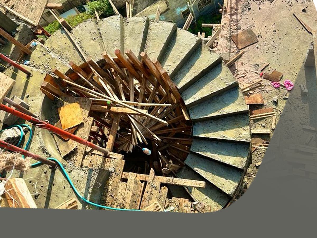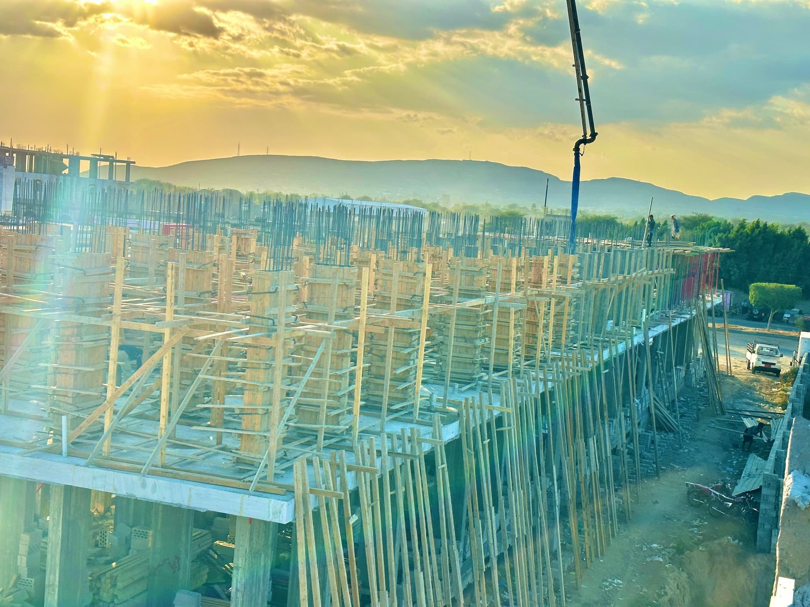 صب الأعمدة، الجسور، والأسقف الخرسانية. بناء الجدران الخارجية والداخلية باستخدام الطوب أو البلوك. تنفيذ السلالم الخرسانية.
